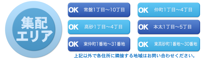 ※集配につきましては、原則として1,500円以上もしくは、5点以上の受付からのサービスとさせていただきます。